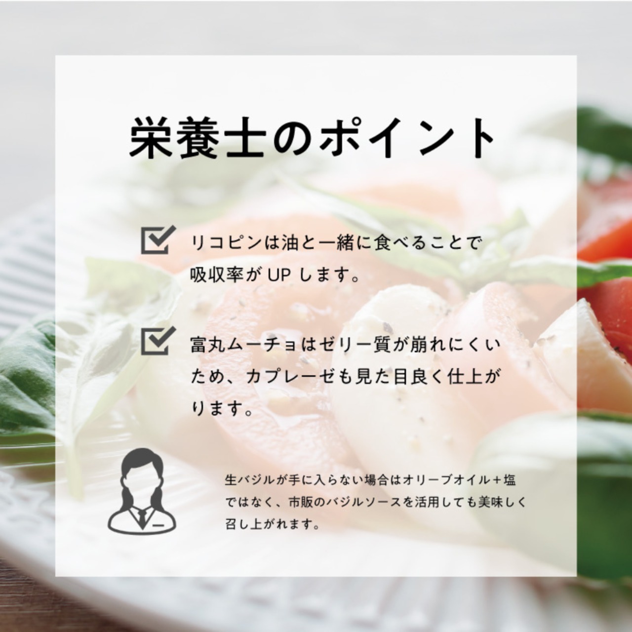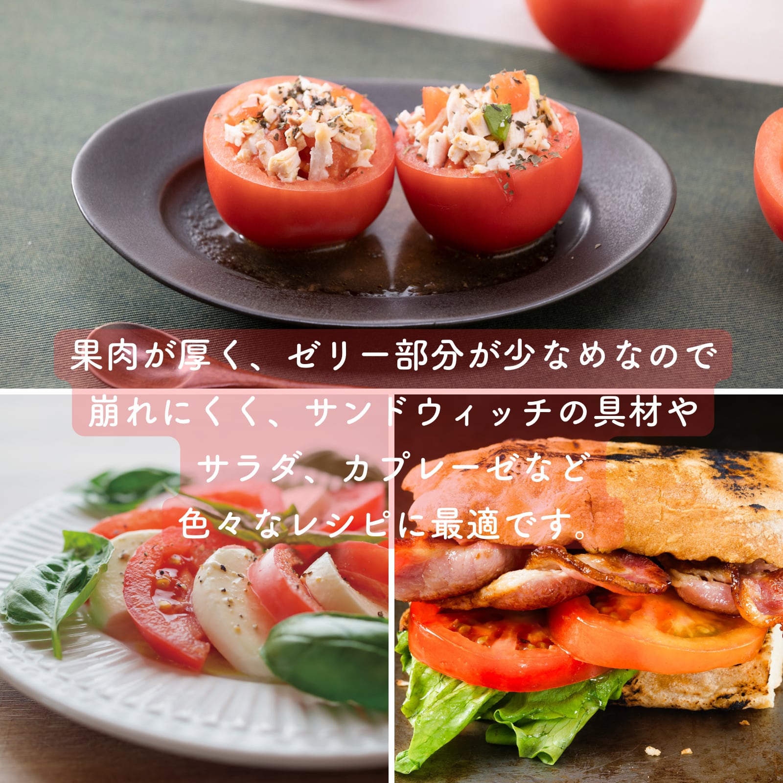 崩れにくいのでサラダやカプレーゼ、サンドウィッチの具材にもピッタリです。