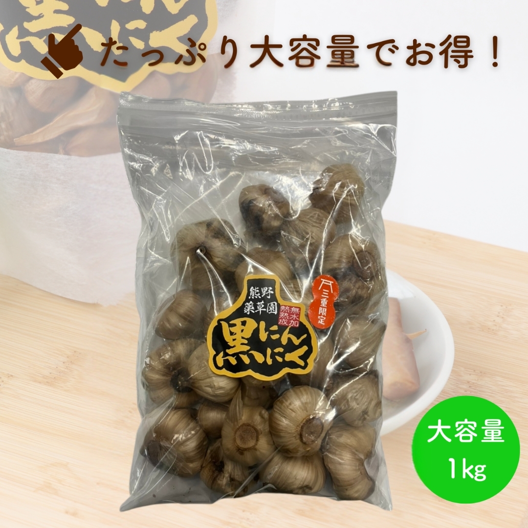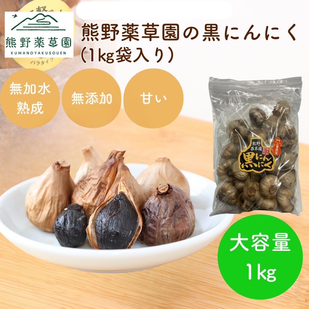 熊野薬草園の自社農園で採れたにんにくを、水を加えずじっくりと熟成させた黒にんにくです。じっくりと熟成させることで大変柔らかく、コク深い味わいの仕上がりになっており、滑らかな食感が特徴です。